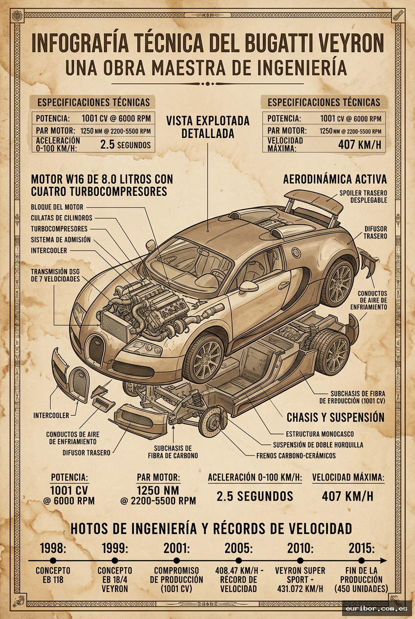 El Bugatti Veyron nació como un proyecto aparentemente imposible. Nombrado en honor a Pierre Veyron, un piloto de carreras francés que ganó las 24 Horas de Le Mans en 1939, el coche representaba mucho más que un simple vehículo de alta velocidad. Era una declaración de que los límites de la ingeniería son solo desafíos por superar. Desarrollado entre 2001 y 2005, el Veyron requirió una inversión estimada de más de 1.000 millones de euros, convirtiéndolo en uno de los proyectos automovilísticos más costosos de la historia.